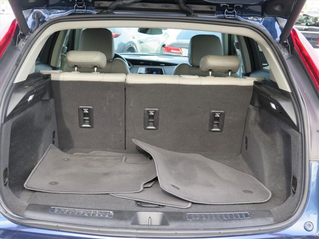- Opens or closes when the system senses the key fob and the driver extends their foot under the left-hand side of the rear bumper over an image of the Cadillac Crest projected under the vehicle